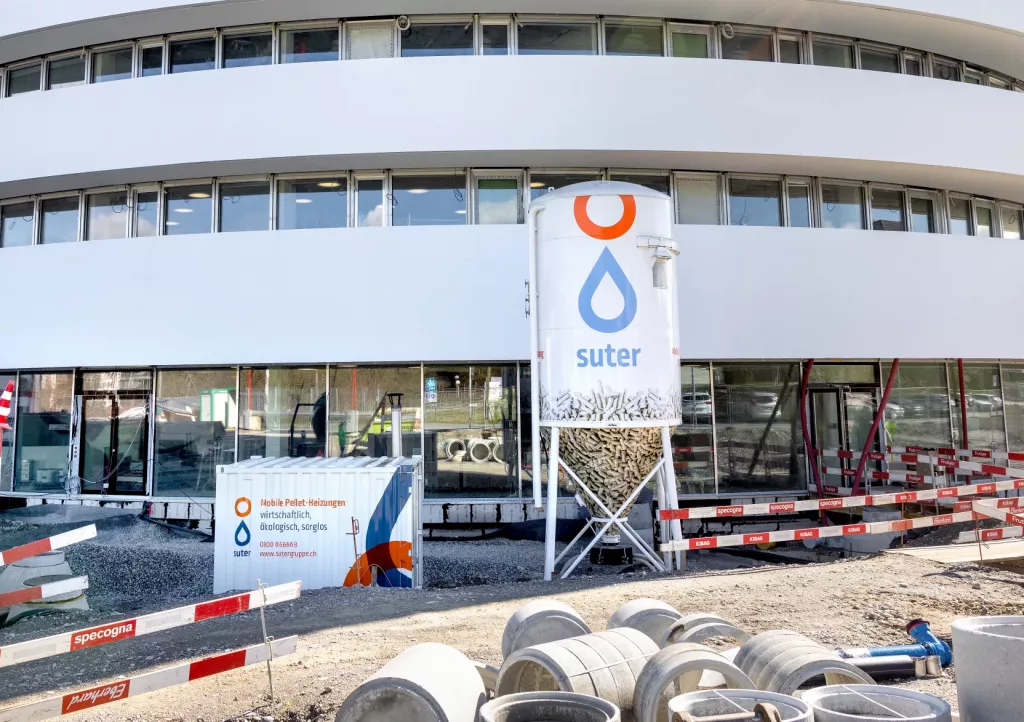 Massgeschneiderte mobile Pellet-Heizung für den Aarauer Spitalneubau