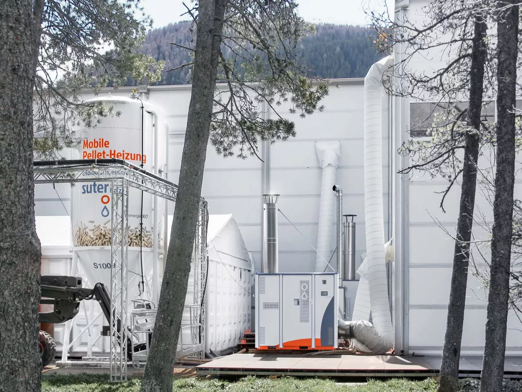 Suter bietet mobile, umweltfreundliche Pelletheizungen für Events, die flexibel, emissionsarm und ohne Spezialbewilligung einsetzbar sind.